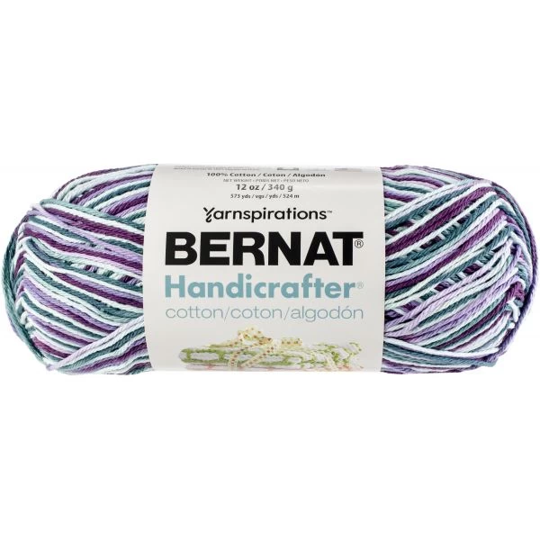 Bernat Handicrafter Cotton Yarn 340g – Ombres – The perfect choice for your knit and crochet kitchen and home decor needs. Handicrafter is a versatile worsted weight yarn, that’s great for small projects like dishcloths and potholders, to home decor staples like afghans! Weight Category: 4. Content: 100% cotton. Putup: 12oz/340g, 573yd/524m. Gauge: 20sx26r = 4in/10cm on size US7/4.5mm knitting needles. Suggested crochet hook size: H-8. Dyelotted: we try but are not always able to match dyelots. Care: machine wash, machine dry, do not bleach, do not iron, do not dry clean. Comes in a variety of colors. Each sold separately. Imported.