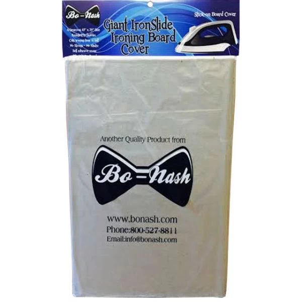 Bo-Nash Ironslide 2000 Tabletop Cover – BO-NASH: Ironslide 2000 Tabletop Cover. This stick-on ironing board cover fits boards up to 27×63 inches and cuts ironing time in half. It is made from Luminex to reflect 300% more heat than regular cotton covers and irons both sides at once. This package includes one 29×65 inch cover. Imported.