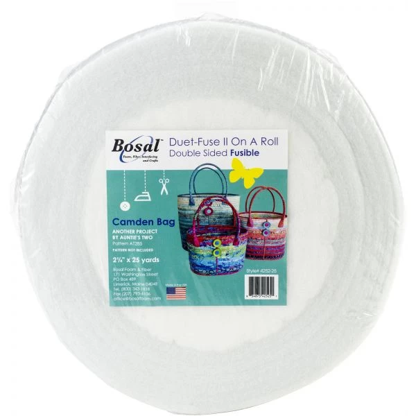 Bosal Duet II Double Sided Fusible Interfacing On A Roll – This luxurious, fusible batting is exactly when you need to obtain the stability and drape that you’re looking for. This 11.5×11.5 inch package contains 25 yards of double-sided batting. Made in USA.