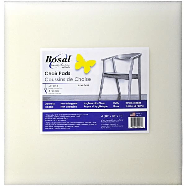 Bosal Foam Square Chair Pad 4/Pkg – Make your own chair pads in the fabric of your choice. Can be cut to any shape. Pads are odorless and non-allergenic. This package contains four 18x18x1 inch foam chair pads. Made in USA.