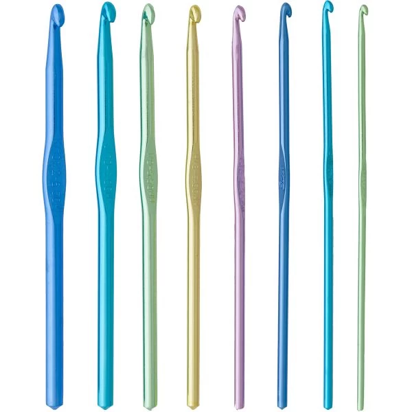 Boye Aluminum Crochet Hook Set – BOYE-Aluminum Crochet Hook Set includes sizes D (3.25mm), E (3.50mm), F (3.75mm), G (4.25mm), H (5.00mm), J (6.00mm), and K (6.50mm). Precision-crafted quality assures a fine finish and accuracy of gauge. This set also features the preferred taper throat and smooth rounded heads. Imported.
