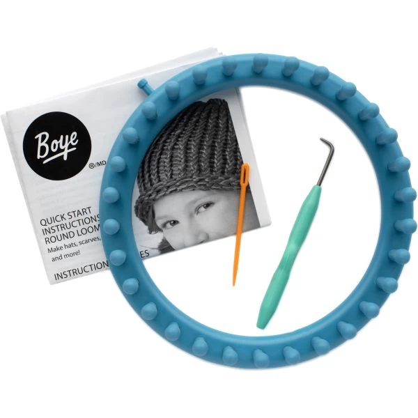 Boye Medium Round Loom – BOYE-Medium Round Loom. This can help you to create beautiful and fashionable hats, bags, scarves and more! This package contains one 7.5 inch peg loom, one loom hook, one yarn needle and instructions. Imported.