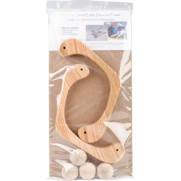 Cabranmary Woods Doodler Lap-Stitch Little Frame – This frame is a great way to work on your project while sitting in your favorite comfortable chair in the living room. This package contains 9 and 12 inch dowels, one set of knobs and one set of oak sidebars. Made in USA.