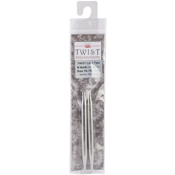 ChiaoGoo TWIST Red Lace Interchangeable Tips 4″ – These precisely-machined, lace tips are made of surgical stainless steel. The size is laser imprinted on each tip. This package contains two 4 inch long interchangeable tips. Size: 10.75/7mm. Imported.
