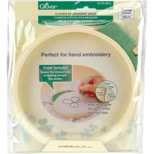 Clover Plastic Embroidery Stitching Hoop 7″ – CLOVER NEEDLECRAFT-Perfect embroidery stitching and traditional embroidery. The edge of the inner hoop grips the fabric firmly, keeping it taut. Screw cover on outer hoop keeps threads on edge of the fabric from tangling.