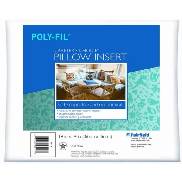 Crafter’s Choice Pillowform – FAIRFIELD-Crafter’s Choice Pillowform. This pillow insert features a polypropylene cover filled with 100% polyester. Also has a zipper on the side for adjusting firmness level by adding or removing fiberfill (extra fiberfill sold separately). This package contains one 14×14 inch pillow insert. Made in USA.