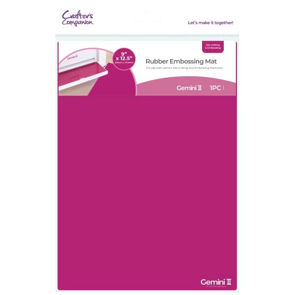 Gemini II Rubber Embossing Mat – Double up your dies to create beautiful embossed designs with the Gemini II Accessories Rubber Embossing Mat from Crafter’s Companion. Designed to work with the Gemini II Die Cutting and Embossing machine, this smart tool will let you create raised, embossed designs from your metal dies. This package contains rubber embossing mat. Imported.