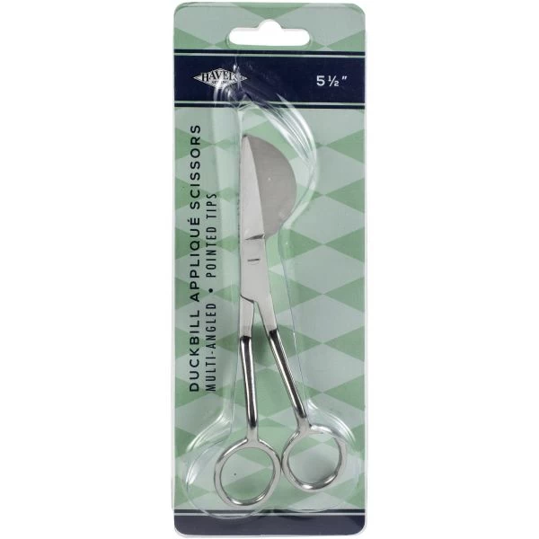 Havel’s Multi-Angled Duckbill Applique Scissors 5.5″ – Traditional duckbill applique scissors improved with a double-curved handle. The unique angles provide better viewing and a more comfortable position with cutting. A special large bill lifts the fabric as it trims it away. This package contains one pair of 5.5 inch duckbill applique scissors. Imported.