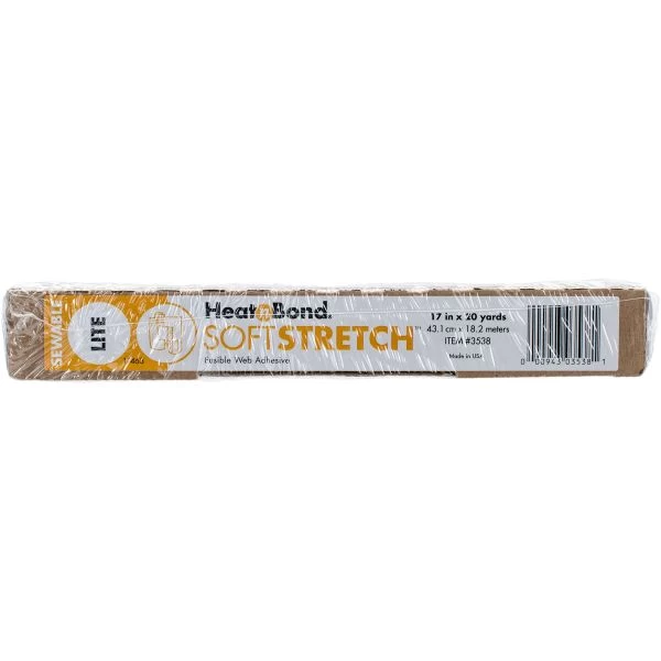 HeatnBond Lite Soft Stretch Iron-On Adhesive – HeatnBond Lite Soft Stretch Iron On Adhesive. This stretchable iron-on adhesive is designed to move with your fabric while maintaining a strong bond! This package contains 20 yards of 17 inch wide iron-on adhesive. Machine washable and dryable. Acid free. Made in USA.