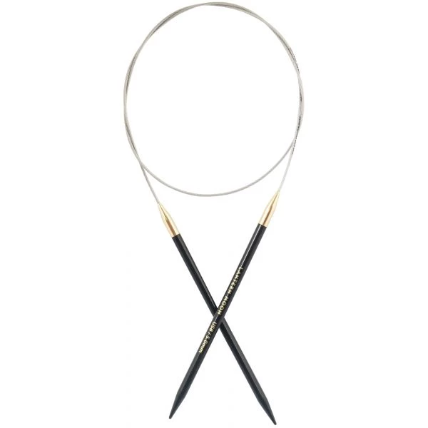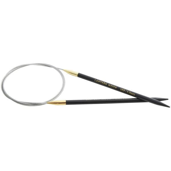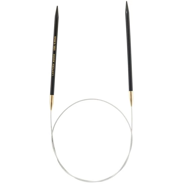 Lantern Moon Destiny Circular Needles 24″ – The needle tips of these fixed circular needles are made of Ebony, one of the world’s most expensive wood. The liquid silk finish on the lightweight needles, plus the 24K gold finish on the brass connector guarantees snag-free knitting. The smooth cords ensures no twist and lies flat when stored. Smoothly honed and shaped needle tips work well with all yarns. This package contains one pair of circular needles with a 24 inch cord. Needle size 8 (5.0mm). Available in a variety of sizes. Each sold separately. Imported.