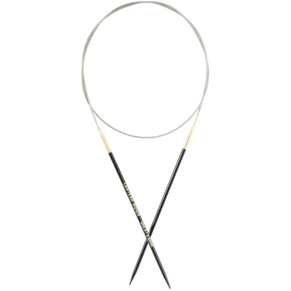 Lantern Moon Destiny Circular Needles 40″ – The needle tips of these fixed circular needles are made of Ebony, one of the world’s most expensive wood. The liquid silk finish on the lightweight needles, plus the 24K gold finish on the brass connector guarantees snag-free knitting. The smooth cords ensures no twist and lies flat when stored. Smoothly honed and shaped needle tips work well with all yarns. This package contains one pair of circular needles with a 40 inch cord. Needle size 2.5 (3.0mm). Available in a variety of sizes. Each sold separately. Imported.