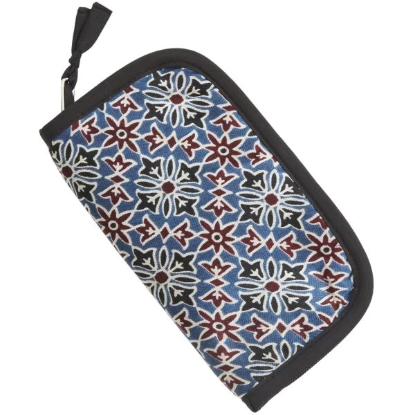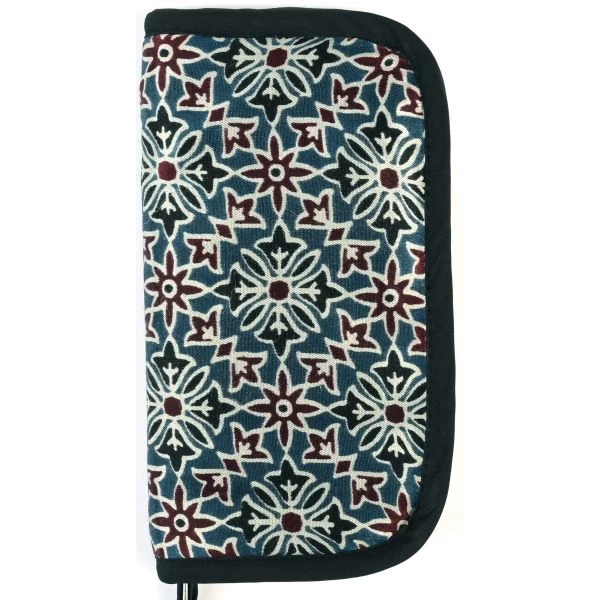 Lantern Moon Knit-Aid Needle Case – Empty – These cases are designed to handle a variety of needle and tool collections. Made of modal satin with silk sheen, these cases are made using an age old technique from South Asia called Ajrak, a block printed cloth with deep crimson red and indigo blue background, bearing symmetrical patterns with interspersed unprinted sparkling white motifs. A small accessory case to hold a needle gauge, repair hook, cable needles, small set of scissors or other essentials. This package contains one needle case. No tools included. Imported.