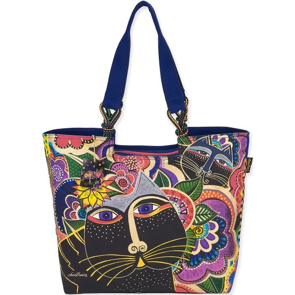 Laurel Burch Shoulder Tote 21″X5″X15″ – Laurel Burch-Shoulder Tote: Carlotta’s Cats. The brilliant hues and wonderful patterns of these carefully designed bags appeal to everyone. They are artful and useful at the same time! This 15×20-1/2×5 inch shoulder tote bag features two 26 inch handles, one large zippered compartment, one cell phone pocket, one open pocket and one inside zipper pocket. Do not wash- spot clean only. Imported.