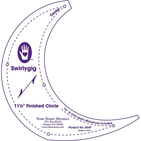 Marti Michell Swirlygig Template – Let these templates be your guide. This 6×9 inch package contains one circle template designed to make a 11.5 inch finished circle. Imported.