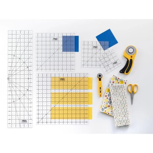 OLFA Frosted Advantage Non-Slip Ruler “The Standard” – OLFA Frosted Advantage 12.5×12.5 Inch Acrylic Ruler is non-slip for stable and safe cutting. Frosted back with black grid lines for clarity on light- and dark-material. The large bold black numbers are easy to read. The ruler has black grid lines at every inch, dotted black lines mark the half-inch and black tick marks along the solid line mark the quarters and eights. The frosted back grips in place for safe, stable cutting but repositioning for small adjustments. Great for squaring pieced blocks, cutting larger pieces, and works well as a template for pillow tops and simple square patchwork designs. Also great for fashioning scrapbook and album pages. For right- and left-handed use. Hole for convenient hanging. Available in 8 sizes. This package contains one 12.5×12.5 ruler. QR-12S, 1071818. Imported.