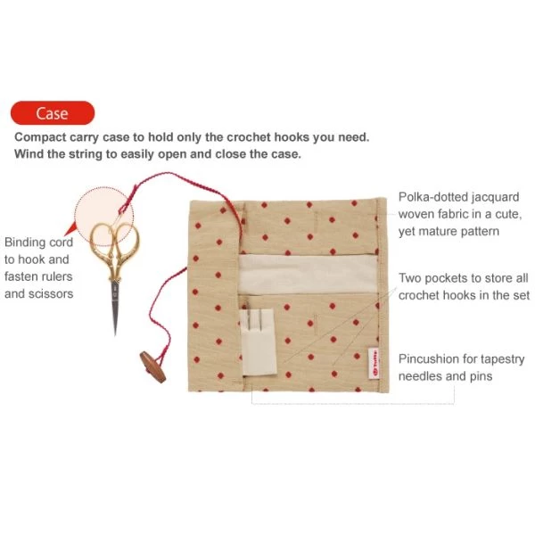 Tulip Etimo Red Crochet Hook W/ Cushion Grip Set – The worldwide favorite ETIMO Series brings you ETIMO Red. The matte red tones of the hook tip do not reflect light and are gentle on the eyes. A smooth feel, and cushioned grip are easy on hands to prevent fatigue! Stitches can be easily picked up on dark colors. This package contains eight crochet hooks (1.80, 2.00, 2.20, 2.50, 3.00, 3.50, 4.00, 5.00mm), two tapestry needles, one ruler and case. Imported.